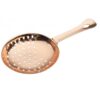 This copper-plated Julep Strainer is designed for easy straining from mixing glasses. Its curved shape fits securely over the rim, allowing for smooth and controlled pours.