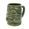 Enjoy your favorite tropical cocktails in style with the Tiki Mug Green with Handle! This hand-glazed ceramic mug features a playful yet traditional tiki design with a sturdy handle for easy sipping. The deep green glaze and expressive carving make it a perfect addition to any tiki bar, offering both style and practicality.