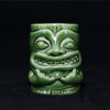 Unique handcrafted design – A lively tiki expression with intricate details and a smooth green glaze.
