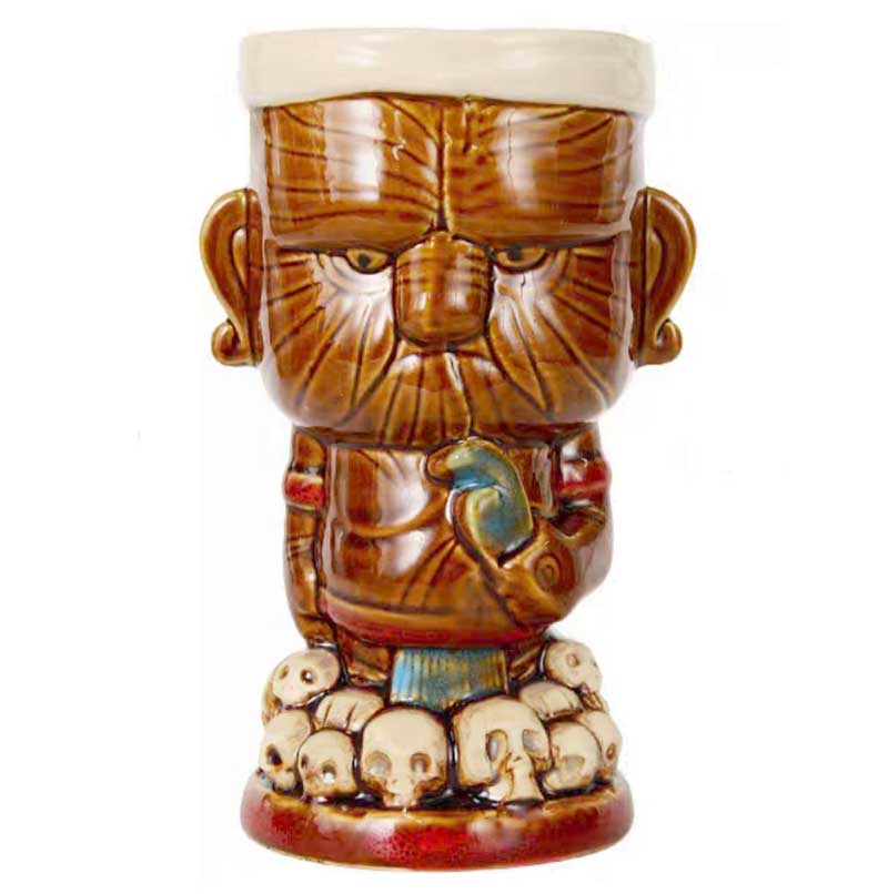 Add a mysterious edge to your tiki collection with the Tiki Skull Boy Mug. Featuring a hand-glazed ceramic design, this mug showcases a wise, aged tiki figure standing atop a base of intricately sculpted skulls. The deep brown glaze, combined with expressive carved details, creates a bold and eye-catching look perfect for serving eerie yet delicious tiki cocktails.